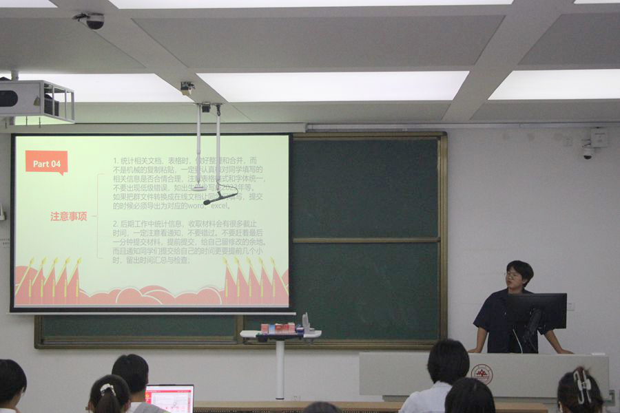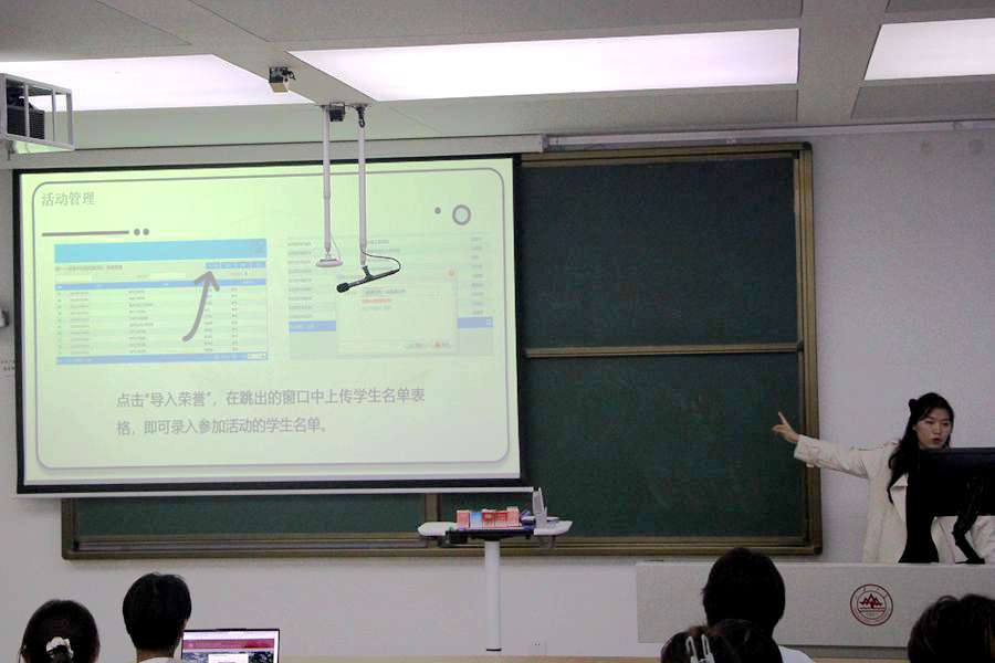 最后,综合办公室的朱珉锐就拓展培养管理系统登陆方式、活动计划、活动管理、注意事项四个方面进行了培训,使各位团支书熟悉了拓培系统的使用方法,方便其后续开展工作。