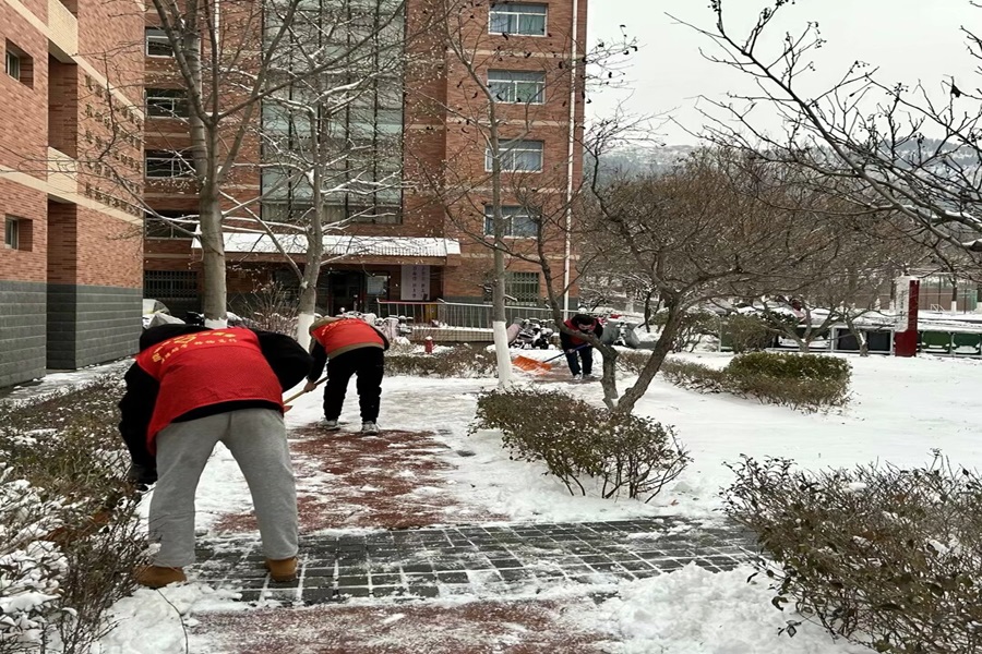 活动伊始,志愿者们不畏严寒,手拿着铁锹与扫帚来到了各宿舍楼前开始了扫雪工作。寒风阵阵,却并没有阻挡大家扫雪的热情。扫雪过程中,两人一伙,三人一群,齐心协力,配合默契,在白茫茫的雪地里忙碌的“志愿红”构成了一道靓丽的风景线。经过2个小时连续奋战,宿舍楼下的积雪全部清理完毕,及时消除了校园安全隐患,志愿者们以实际行动为同学们的安全出行保驾护航。活动结束后,相关负责人完成了所有志愿者的签离以及回收工具等事务,本次活动获得了圆满成功。